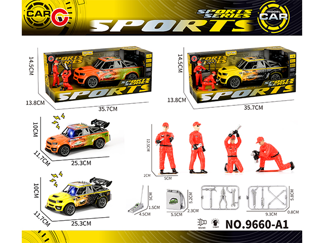 灯光声音惯性3DUV印骨架跑车+维修工+工具 |