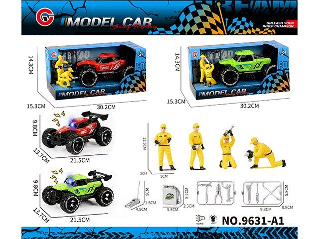 小号惯性灯光越野跑车+维修人+工具 |