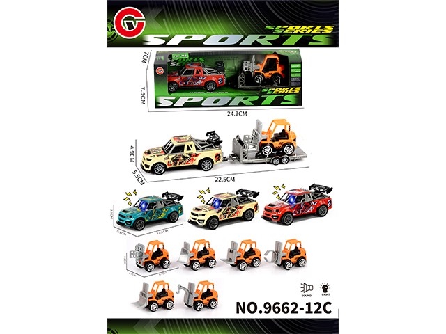 灯光声音回力涂鸦骨架跑车载滑行工程车 |