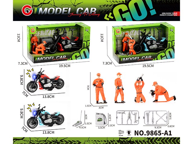 灯光声音回力哈雷摩托车+维修工人+工具 |